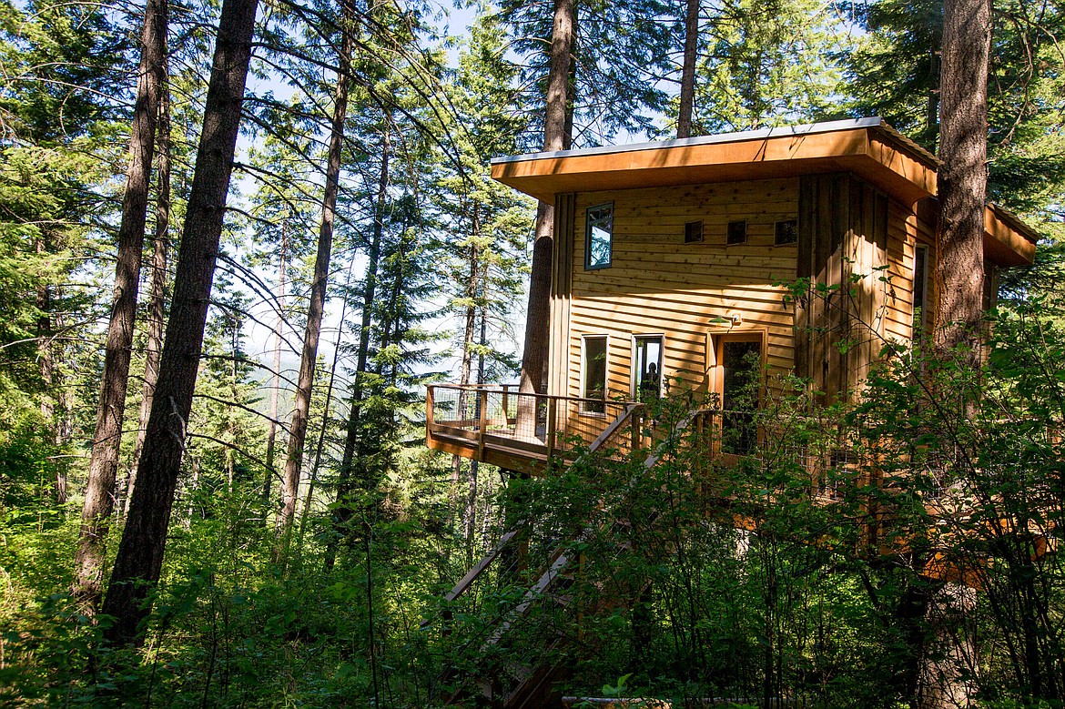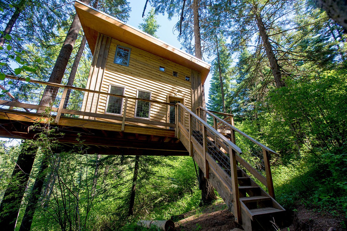 The treehouse itself is 600 square feet with a staircase that climbs to a deck overlooking Lake Coeur d’Alene.
