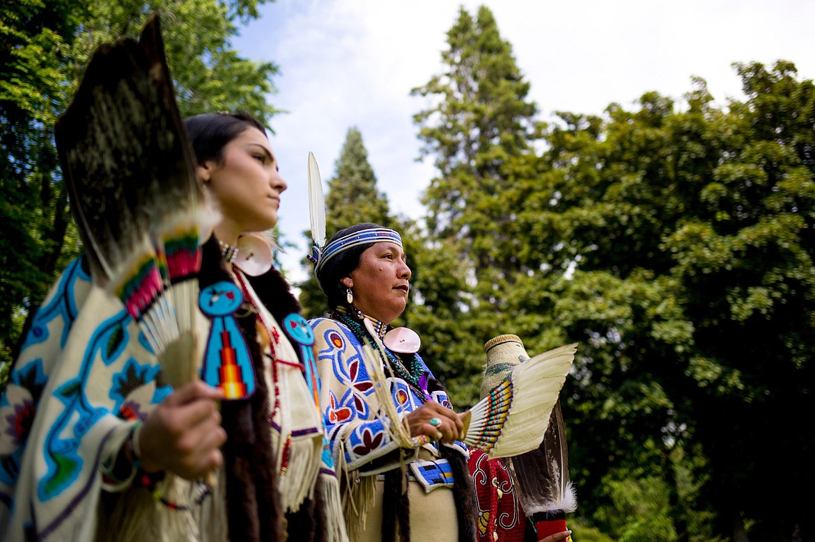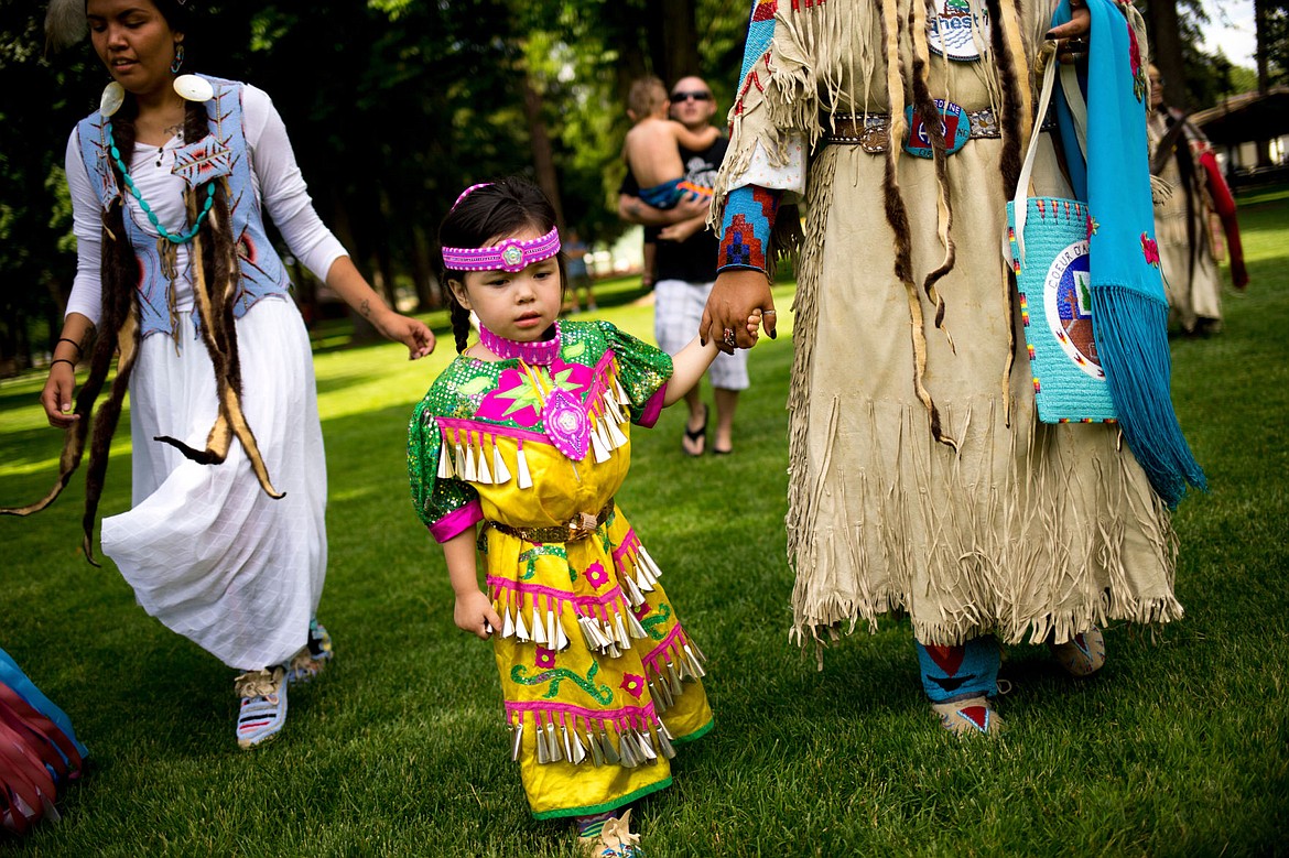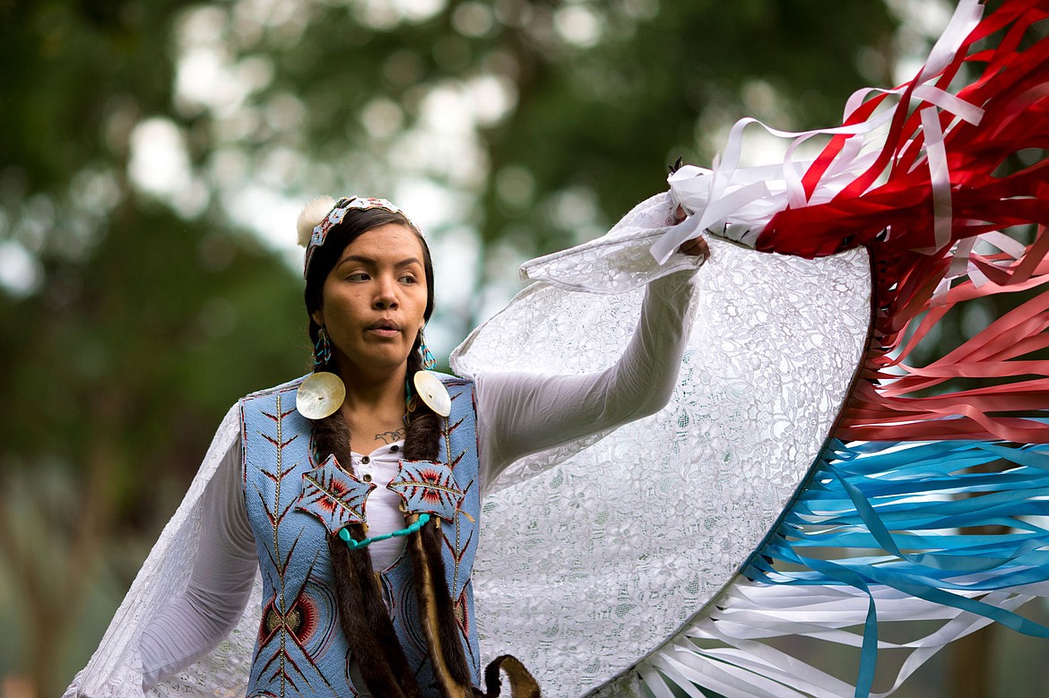 Louie and her daughter, North Star, were at City Park Wednesday to participate in the dancing and to welcome the canoe to Coeur d’Alene, a historically significant place for the Tribe.