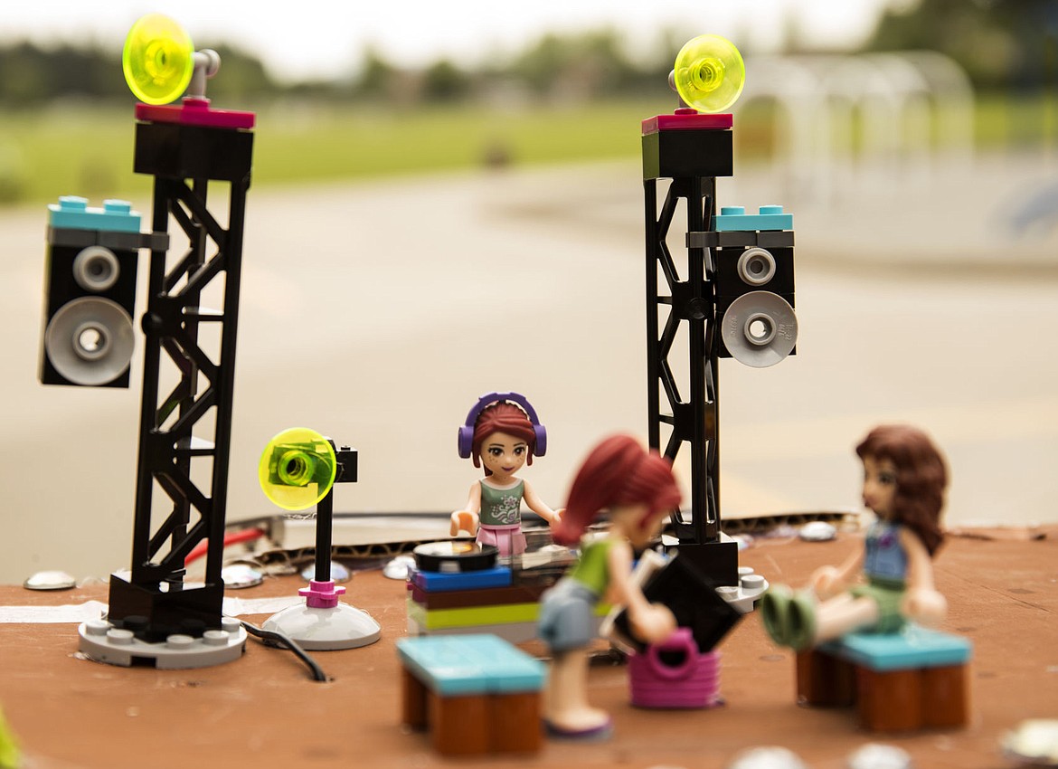 The cardboard was rough-cut on the two-story house built by Tytan and his classmates, Sam Lambert and Madix Avell, but included a Lego floor, a disco ball and a pulley system the "billionaire" Lego man could ride up and down — although Sam said they had some pulley issues because the motor would move it too fast.