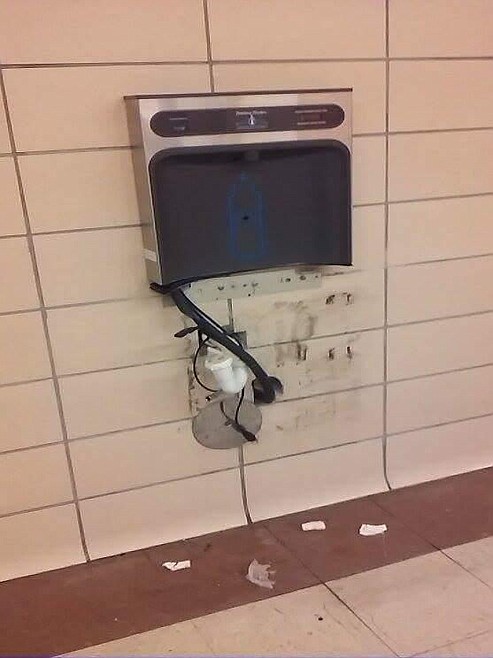 The event allegedly started out with the intent to put plastic cups full of water in the hallways of the school, but by the end of the night the prank had grown to water fountains ripped from the walls, a broken statue, a damaged vending machine and trash and paper strewn throughout the building.