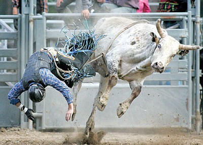 David Graham of Great Falls parts ways with the bull known as "The Cow."