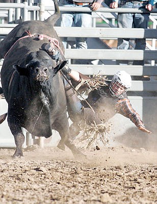 Shadrick Rich of Columbia Falls exits the bull known as "Coal Train."