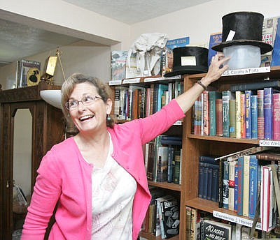 Christy Kehn of Bighorn Antiques points to a beaver skin top hat circa 1811-1835.