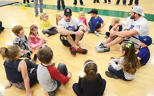 Chase Reynolds of the St. Louis Rams plays duck, duck, goose at the Winter Classic Play 60 Challenge at Whitefish High School in this file photo. For the Children, a local nonprofit, will host this year's NFL Play 60 event at Glacier High School on Saturday, June 18.