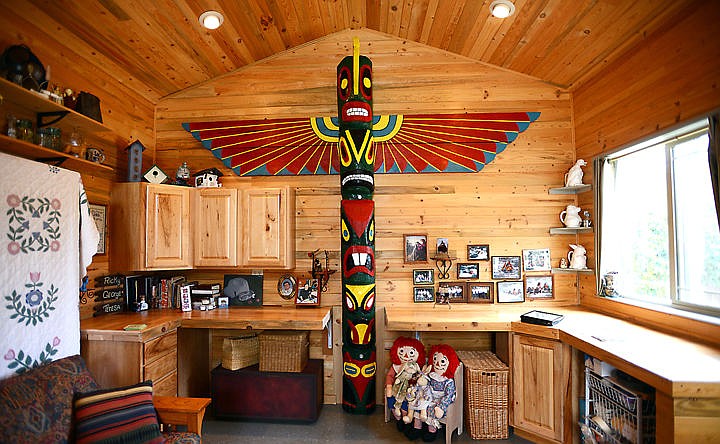 Rick Schmidt opted to keep his totem pole in its original condition and has it displayed at his home near Whitefish. Adams restored and repainted hers and has it inside her Columbia Falls home art studio. It was a family project, with Rick’s grandsons, Maclean and Schafer VandeVoort, helping with the painting.
