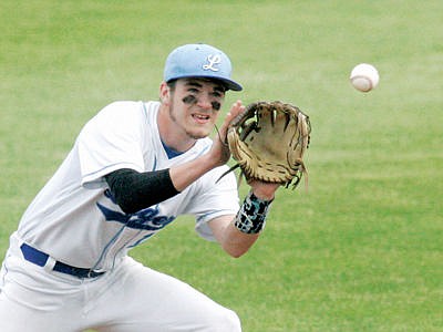 Line drive to shortstop Collin Johnson for the first out top of first inning vs. the Bitterroot Bucs June 17. First of a doubleheader, Loggers fall 15-6.