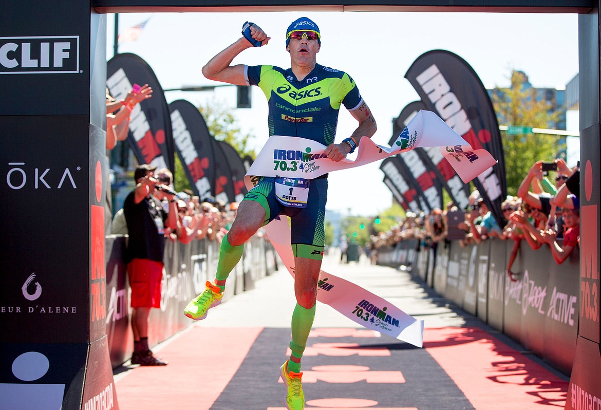 Potts turned a two-second deficit coming out of Lake Coeur d’Alene and a 15-second deficit coming off the bike into a 55-second advantage at the halfway mark of a 13.1-mile run. The 2004 Olympic triathlete who finished fourth in the 400-meter individual medley in the 1996 Summer Olympics won with an overall time of 3 hours, 54 minutes, 45 seconds and held off Australian Josh Amberger (3:56.49) for his 26th career 70.3 title.