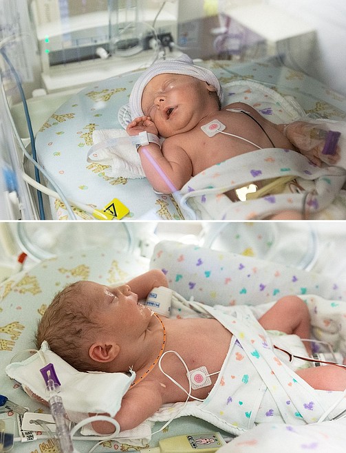 The twins were born to Spencer and Jessica Lambas at 12:50 p.m. in the birthing center of Kootenai Health on Monday, earning the babies the distinction of being "leaplings" for having a leap day birthday.