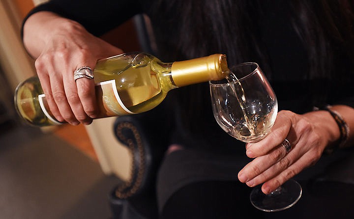 Dana Berardinis pours a pear wine to taste on Tuesday, February 23, at her shop in downtown Polson. (Brenda Ahearn/Daily Inter Lake)