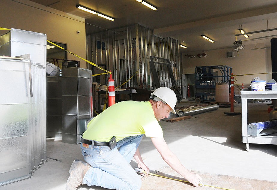 Dave Burns takes measurements for the venting system of the emergency room expansion at Kalispell Regional Medical Center on Thursday. (Aaric Bryan/Daily Inter Lake)