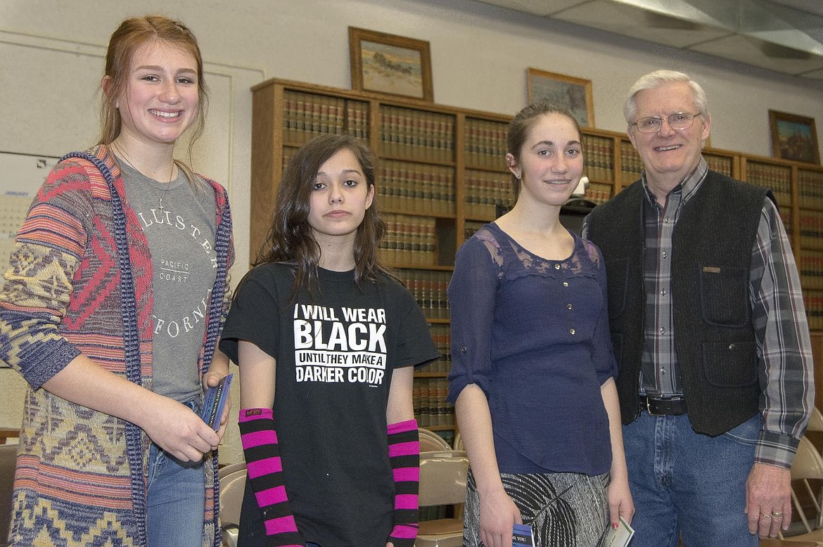 Left to right: Brooke Bowlin, 2nd Place Frida Rivera, third place winner Myknezi Blood, and Official Pronouncer Dan Whittenburg.