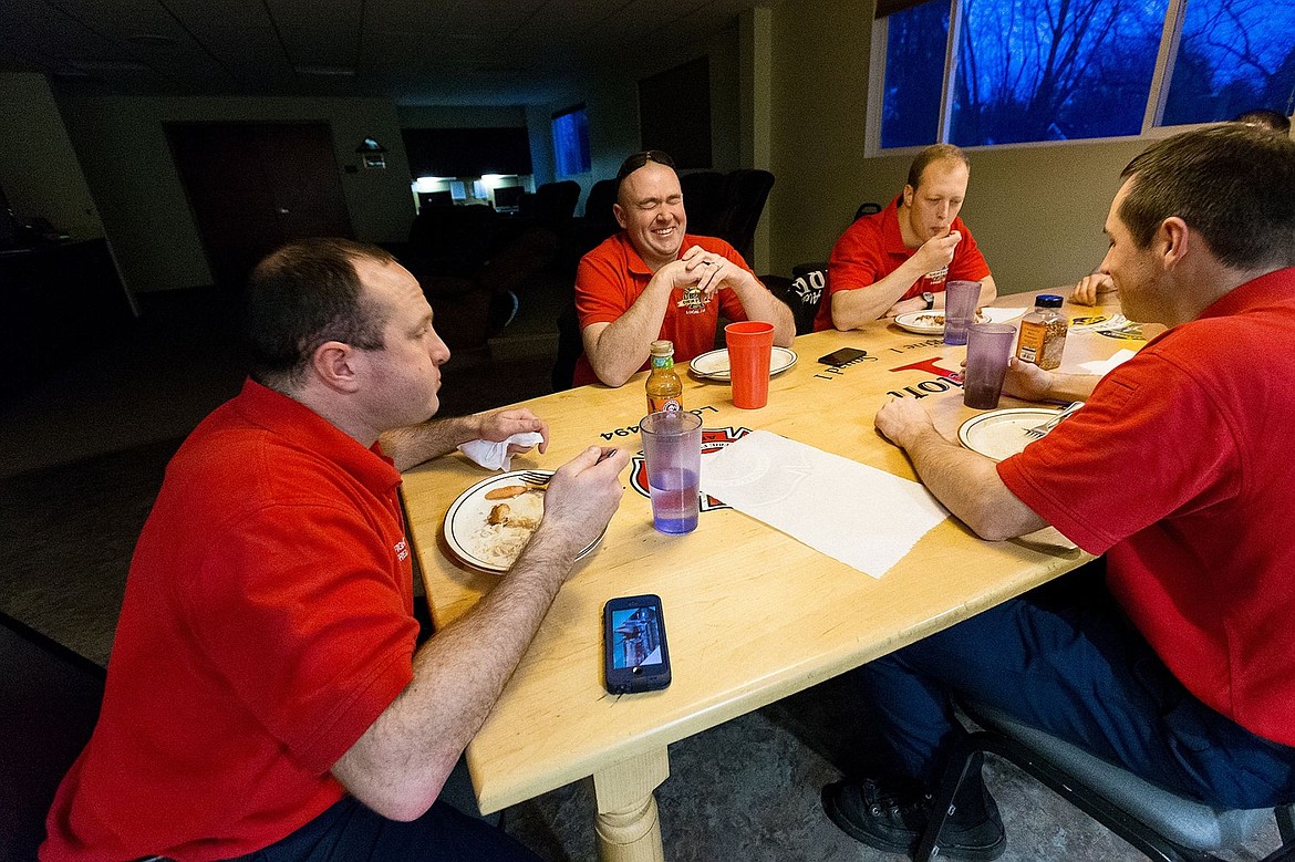 Etherton said the firefighters share one-third of their lives together in 48-hour shifts, then off for four days, always with the same crew.