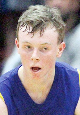 Dillon Savage, left, and Mason Chapel guarding Libby's Ryggs Johnston in fourth quarter Jan. 29.