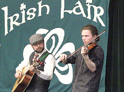 Broken Whistle band members Chris Reichert, left, and Kelcey Hanson entertain during Irish Fair 2016.