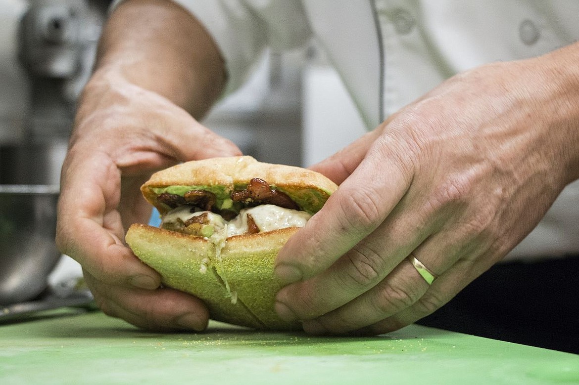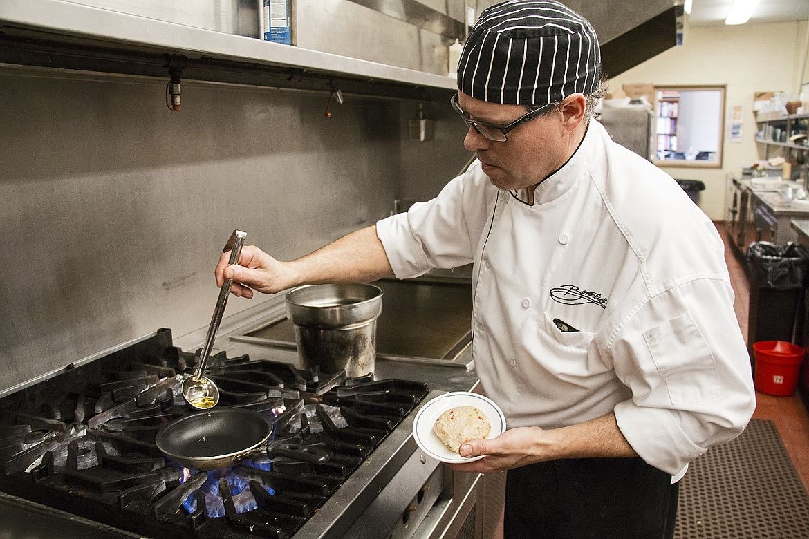 COEUR d'ALENE — Using a white rubber spatula, Mark Bertram delicately pressed on a handmade turkey burger patty as it sizzled and browned in a small pan over a blue flame.
