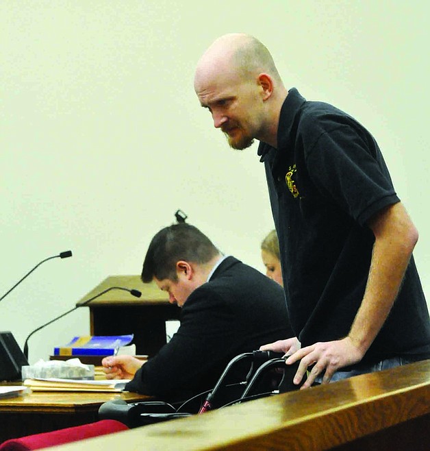 Ryan Pengelly, 30, winced and grimaced his way through the proceedings on Tuesday after walking into court with the assistance of a walker.