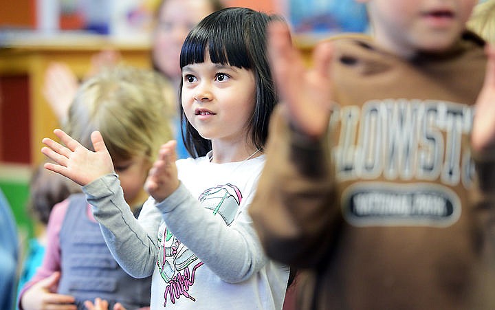 Cami Matern, 4, of Kalispell, takes part in storytime at ImagineIF Library in Kalispell on Tuesday, March 22.