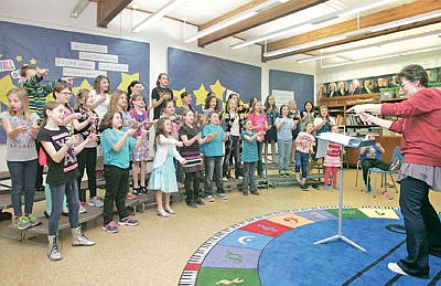 Lorraine Braun conducts the Libby Children's Select Choir during practice Tuesday afternoon at Libby Elementary.