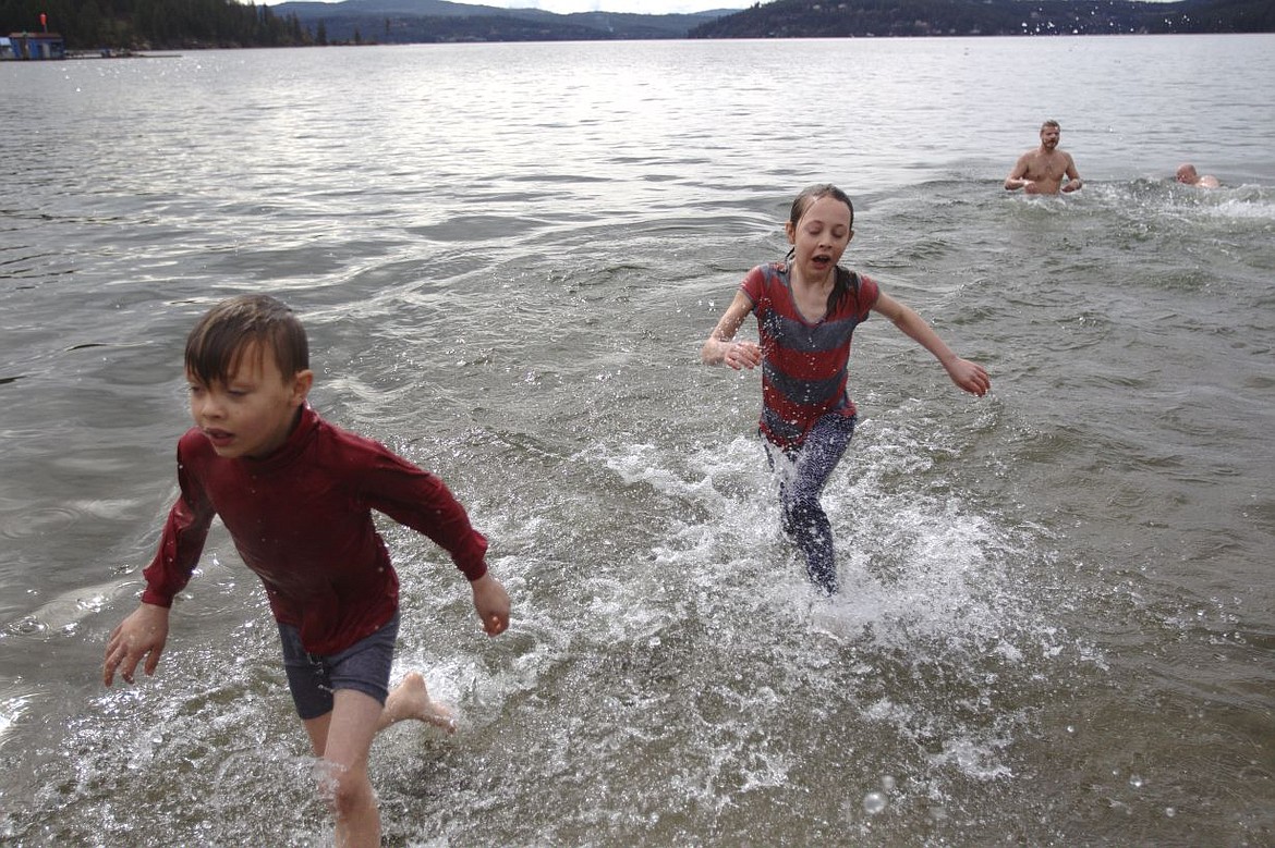 The brave nine entered the water at a quick pace, most came back out at just as quick of a pace, except Ray Ward of Post Falls who stayed in the lake, a Go-Pro camera strapped to his forehead.