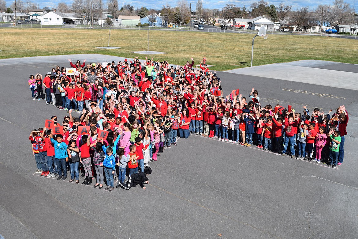 MOSES LAKE — A sea of red shirts flooded the playground at Peninsula Elementary Friday afternoon, as students and staff sent a message of support to a peer who is hospitalized in Seattle.