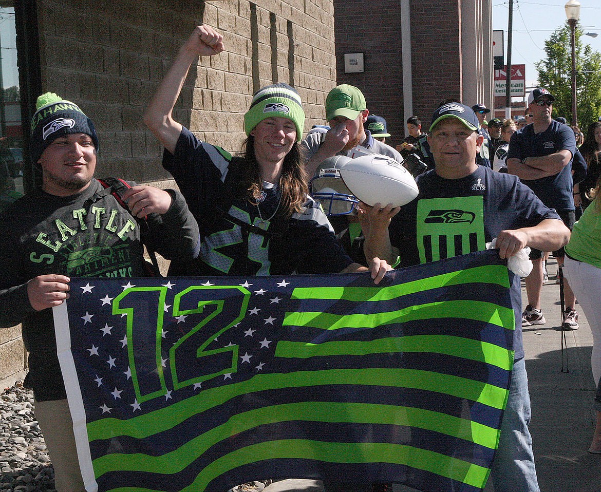 MOSES LAKE — Seattle Seahawks linebacker K.J. Wright poked his head around the corner of the former DollarUp building on Balsam Street and smiled as the fans lined up down the street responded.