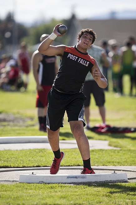 Shot put — 1, Grady Leonard, Coeur d’Alene, 54-8 1/2. 2, Nate DeGraw, Post Falls, 46-4. 3, Devin Ekness, Post Falls, 45-4. Discus — 1, Grady Leonard, Coeur d’Alene, 152-0. 2, Jaxon Fleshman, Coeur d’Alene, 145-3. 3, Donavin Rottini, St. Maries, 143-0. High jump — 1, Brian Skinner, Coeur d’Alene, 6-0. 2, Tyler Trengrove, Post Falls, 5-10. 3, Holden Ray, Lakeland, 5-8. Pole vault — 1, Cole Hooper, Sandpoint, 12-6. 2, Bannock Pointer, Lakeland, 12-6. 3, Cody Barber, Post Falls, 12-6. Long jump — 1, Gunnar Sciortino, Post Falls, 20-6 1/2. 2, Jestin Hofer, Timberlake, 20-1. 3, Gage Ficklin, Post Falls, 19-2 1/2. Triple jump — 1, Spencer Bassett, Sandpoint, 39-2. 2, Gage Ficklin, Post Falls, 37-6 1/2. 3, Jacob Sieler, St. Maries, 37-5 1/2.