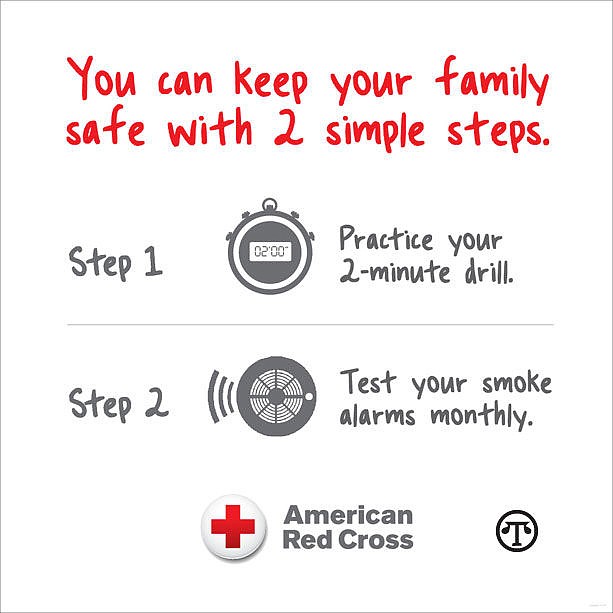 For a Home Fire Safety Checklist and worksheets to create your 2-minute drill go to redcross.org/fire. You can also download, for free, the Red Cross Emergency App for instant access to home fire safety tips and the Monster Guard App for an interactive game that teaches children about home fire safety and prevention at redcross.org/apps.