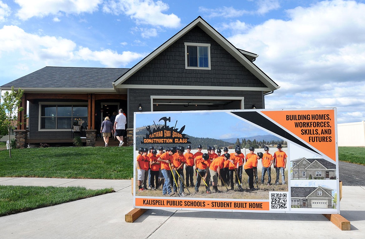 People tour the Flathead High School Construction Class's built house at 663 Corporate Drive in west Kalispell during the open house on Tuesday. (Aaric Bryan/Daily Inter Lake)