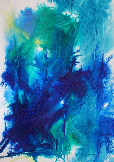 The Lindemann exhibit is showing on the first floor of the bank building, while the second and third floor exhibits continue with mixed-media large and small paintings and unusual fiber art.
