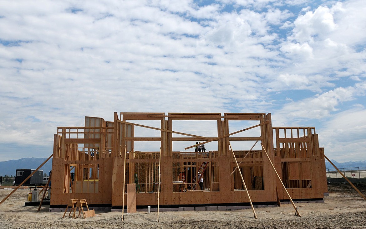 A construction crew works on an oral surgery facility on Timber Wolf Parkway on Thursday. (Aaric Bryan/Daily Inter Lake)