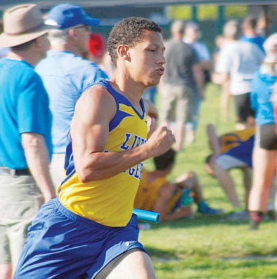 Cole Walker running the 4x400 relay, Archie Roe track meet.