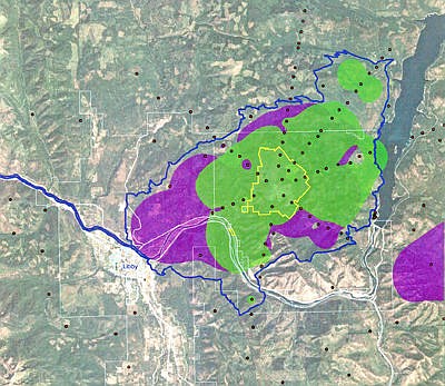 “The OU3 feasibility study area delineated by the EPA, based on the multiple lines of evidence discussed above, is shown as the blue line in Figure 5,” project manager Christina Progess wrote in a letter to Grace representatives dated April 29, 2016. “This study area for the FS ecompasses areas that are impacted by LA due to mine-related activities and for which remedial actions may be needed to address these impacts. This area also includes a wildfire mitigation zone based on modeling and other information from the United States Forest Service. The wildfire mitigation zone consists of an approximate one-mile management area, based on topography and other ground features, around the forest duff area of potential concern. Mitigation measures, such as fuels management, vegetation treatments and fire suppression measures may be necessary to ensure a wildfire in OU3 could be extinguished before reaching the areas within OU3 with the highest contamination levels. The fire mitigation zone will be further refined through additional vegetation data collection, modeling and on-the-ground assessment of fire-related conditions.”