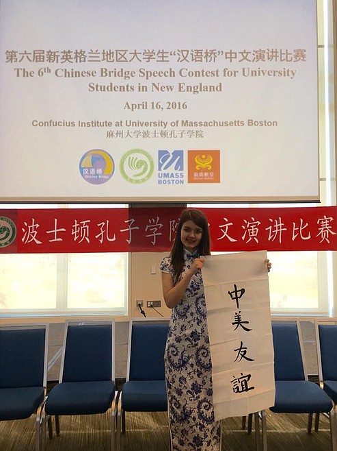 In April, Wu, who grew up in Hayden, channeled some of her earliest experiences with Chinese culture, as well as what she described as "counter culture shock" upon returning to the states, for a speech that earned her second place in the sixth annual Chinese Bridge language competition in Boston. The competition, which tests students on Chinese language and knowledge of Chinese culture, takes place in various cities across the nation and is sponsored by Confucius Institute Headquarters and the Consulate General of the People's Republic of China.
