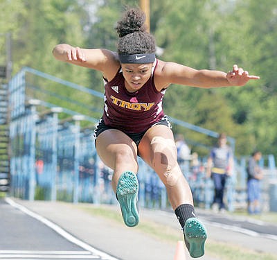 District track meet with Olivia Roach competing in the long jump May 14, 2016.