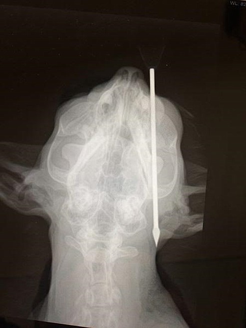 "It missed his brain by a half a centimeter," Halpin said. "He's one lucky cat."