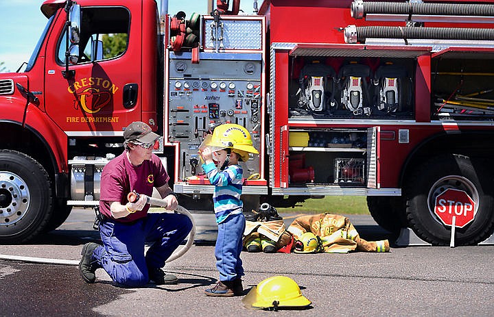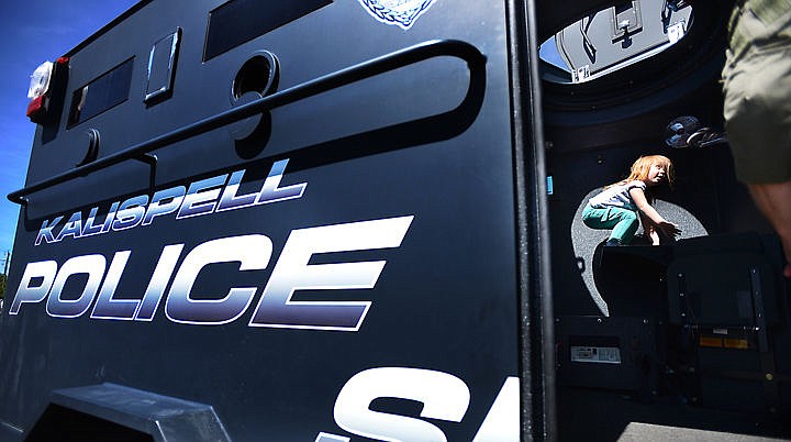 Kalispell Police Department, Kalispell Fire Department and Creston Fire Department brought some of their biggest “toys” for children to explore, such as a tactical armored vehicle and fire trucks.