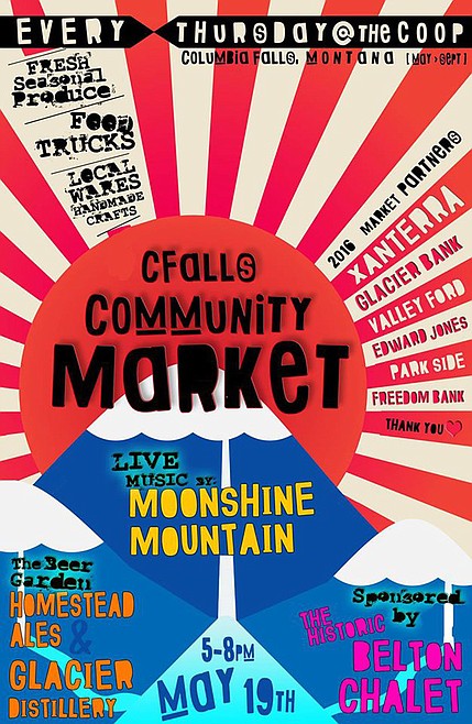 The first market event of the season is tonight, May 19, from 5 to 8 p.m. at the Coop, located at 830 First Ave. W. Live music will be provided by Moonshine Mountain. Glacier Distillery and Homestead Ales will be on hand. The event is free, open to the public and appropriate for all ages.