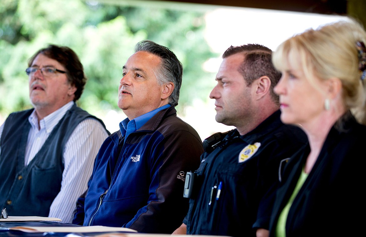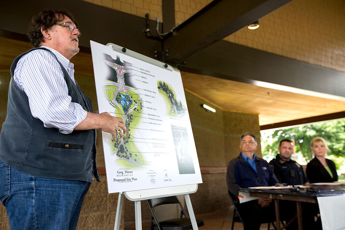 COEUR d’ALENE — Mayor Steve Widmyer and city officials launched a fundraiser to generate enough money to build a water feature at McEuen Park to honor Sgt. Greg Moore, who was killed in the line of duty last year.