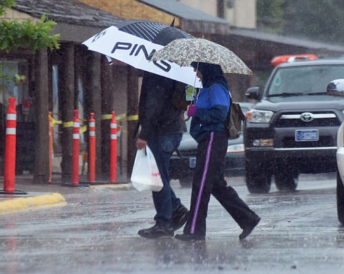 Umbrellas were out on Monday as potent rain storm moved into Whitefish.