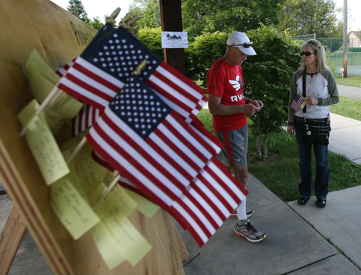 Ehredt will run another 50 miles today, planting a flag for Matthew Stilz, a 26 year-old from Spokane who died 2012, along with another 49 after each one mile lap. On Saturday, he’ll plant a flag for Spokane’s Jacob Hess, 22, and another one for Justin Clouse, a 22 year-old from Sprague, Wash..