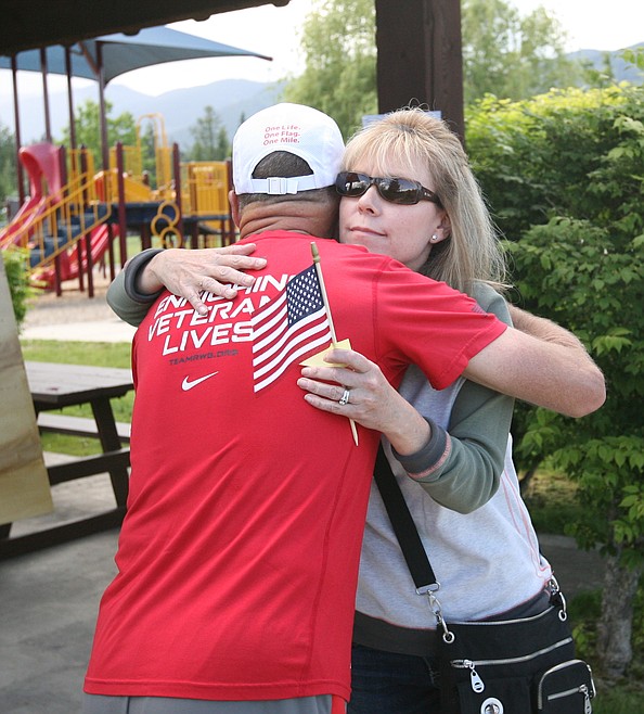 After her friend Jack Drapeau, a vet from Coeur d’Alene, saw an article about Ehredt running 300 miles in six days to honor the last 300 U.S. soldiers to die in war, he got in touch with Hart and the two drove up to Sandpoint to be on hand as the flag for Newby, who was an Army National Guard member, was placed in the mural.