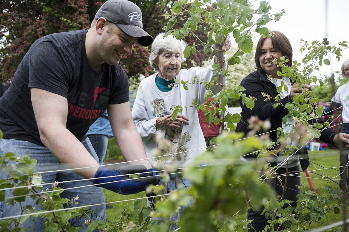 The team adjusted Holden's flower pots and planters, moved dirt piles, pulled weeds, untangled the strings in her raspberry bushes and more as part of CareNet's Rake and Run, an annual event that brings senior-service-providers and other professionals together to conduct much-needed yard work for local seniors.