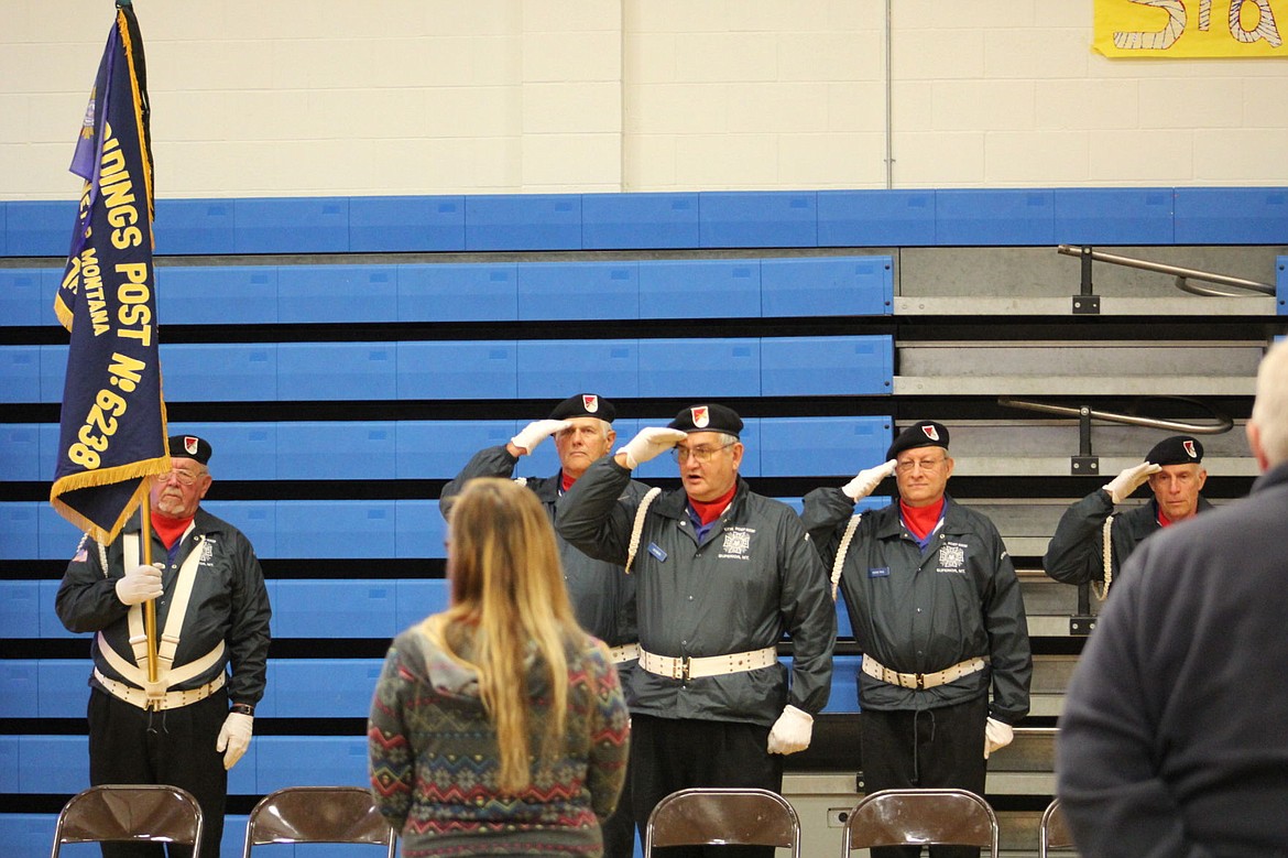 The Superior Color Guard salutes veterans during a luncheon on Armed Forces Day. The luncheon was put on by the Retired Senior and Volunteer Program in Superior.