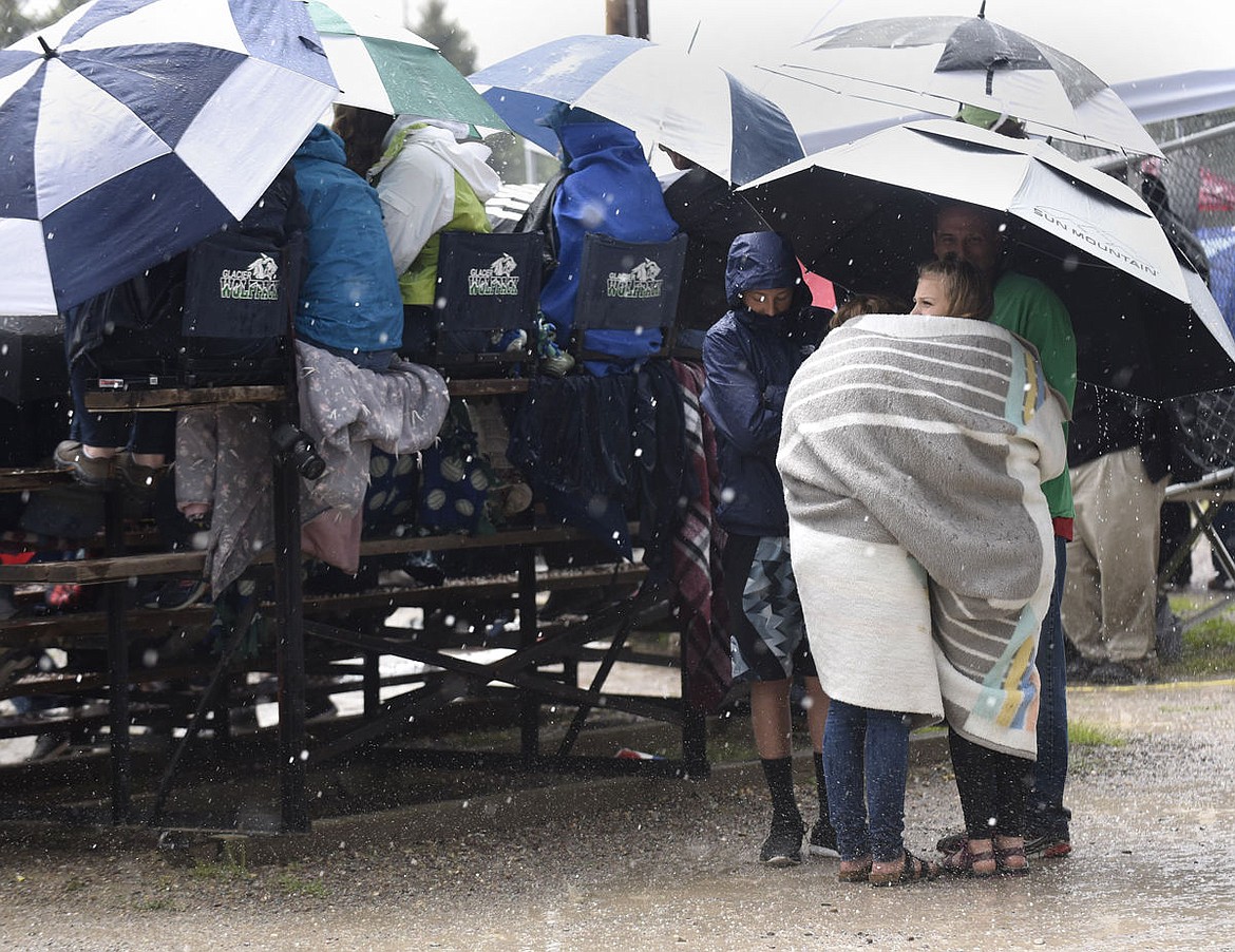 A strange brew of rain, sun, clouds, wind, more sun, a rapidly re-graying sky, a couple bolts of lightning and an encroaching sheet of hail (just for good measure) made a soupy mess of the Conrad Complex on Thursday afternoon and threw a wrench in Flathead High School’s ambitious plan to host the Class AA and B-C softball tournaments simultaneously at the same facility.