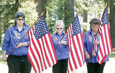 Honoring veterans and the fallen this Memorial Day 2016 were Molly Markel, left, Signe Moser and Billie Jo Brue, members of the Ladies Auxiliary of John E. Freeman Post 5514 at Troy Cemetery.