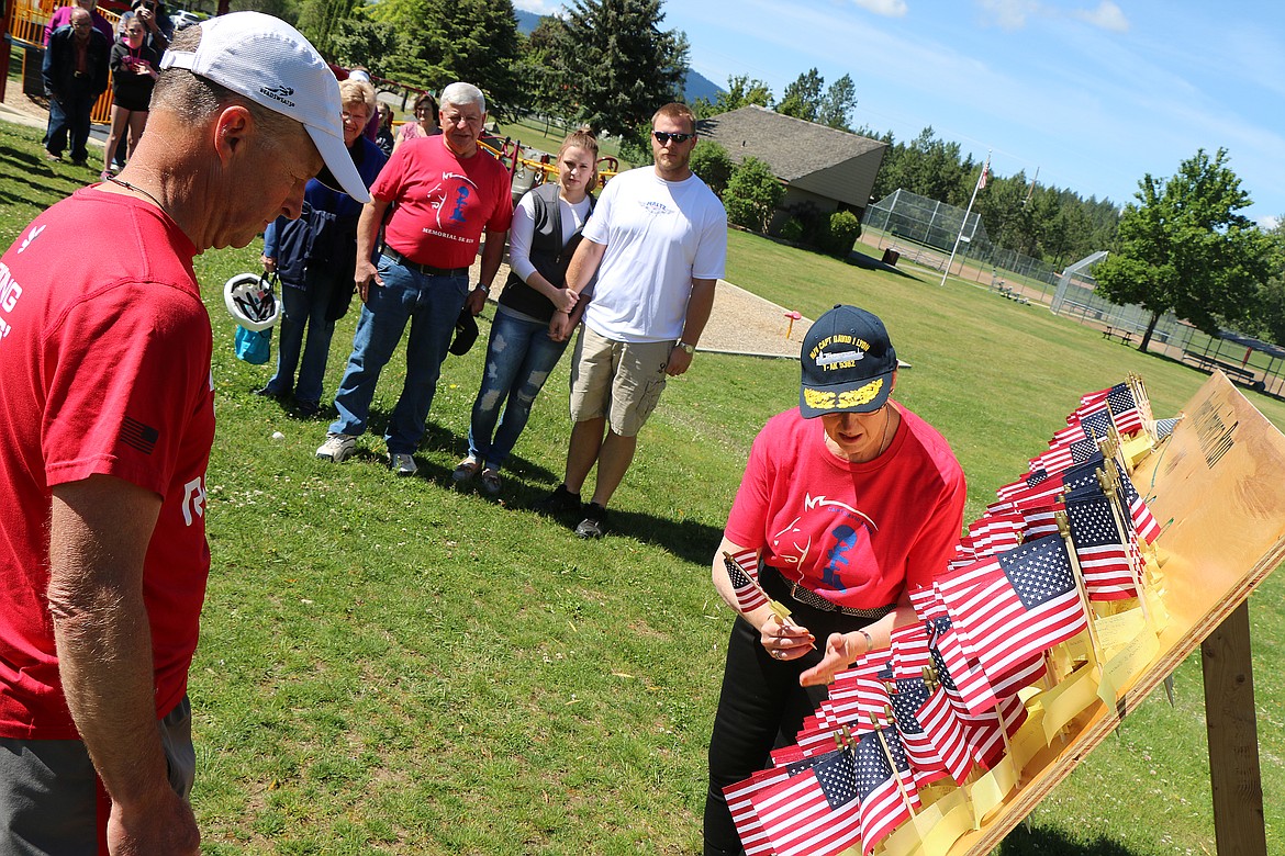SANDPOINT — At first there were just a few people. Then, a dozen or so. Finally, 50-plus people were gathered at Travers Park waiting to help Mike Ehredt honor Capt. David Lyon, who was killed in Afghanistan in 2013.