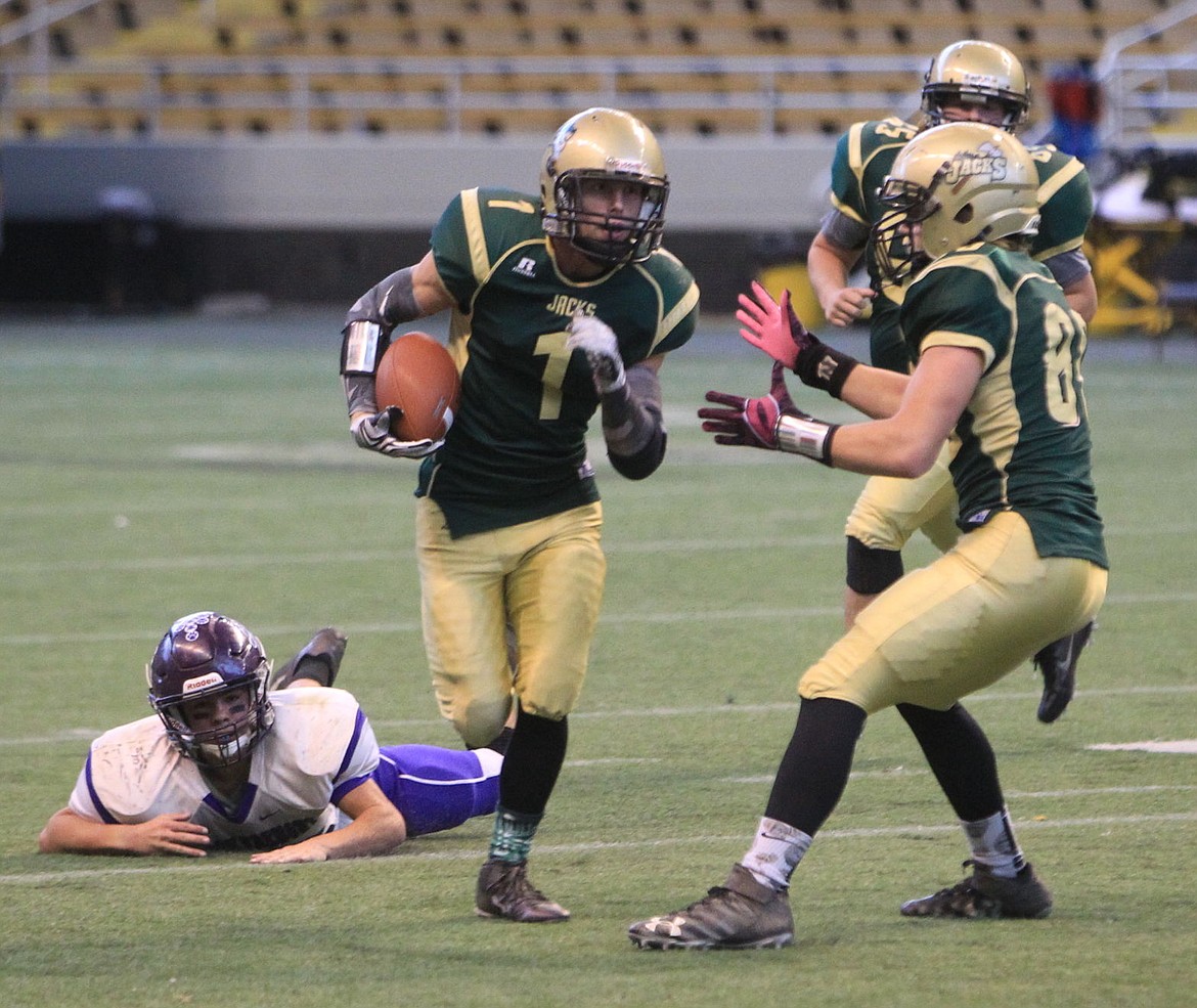 Trailing 27-14, North Fremont attempted a fourth-down pass from the St. Maries 4-yard line with 3:30 remaining, but it was deflected away by Jake Sieler in the end zone.