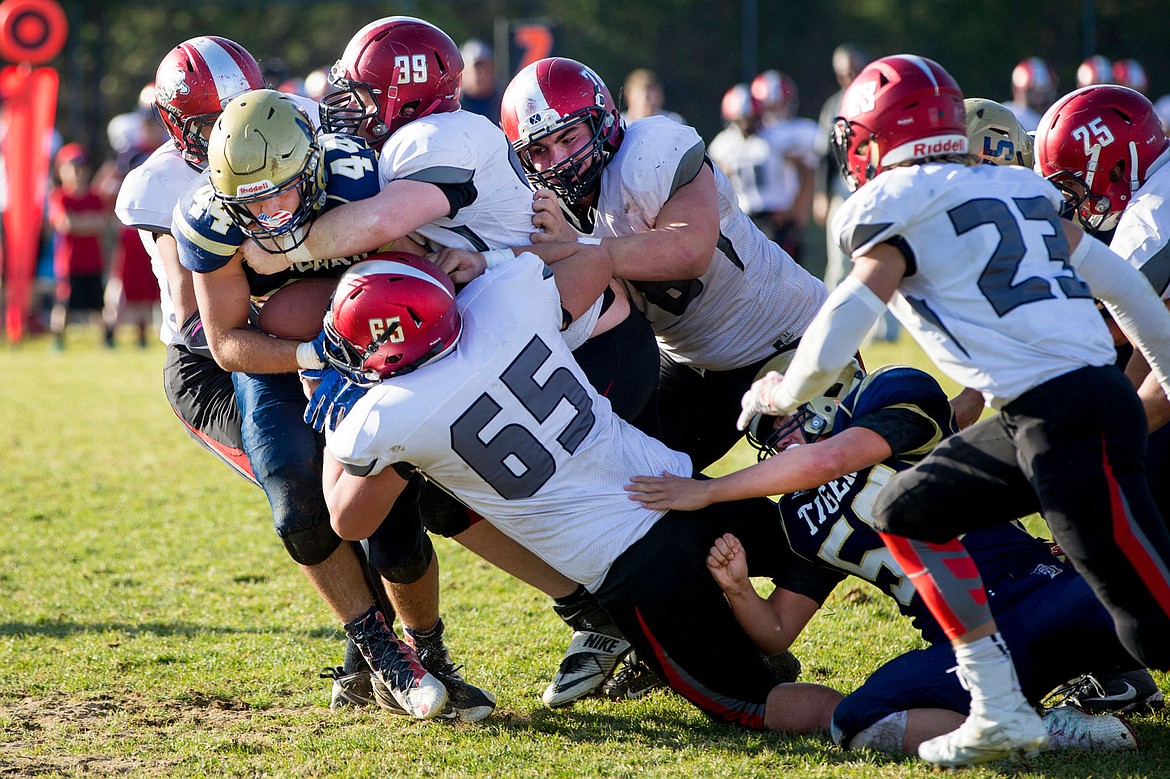 Gooding went ahead for good on a botched punt attempt in the first quarter. A snap by the Tigers’ long snapper hit an upback in the shoulder pad, and bounced onto the ground. That’s where the Senators’ Jack Darcy scooped the ball up on the 13 and rumbled in for a touchdown and a 14-0 lead.