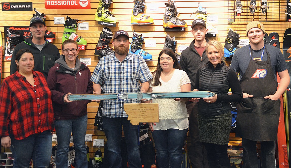 DREAM executive director Cheri DuBeau Carlson last week presented Sportsman employees in Whitefish with a vintage wooden ski with an attached wooden plaque.