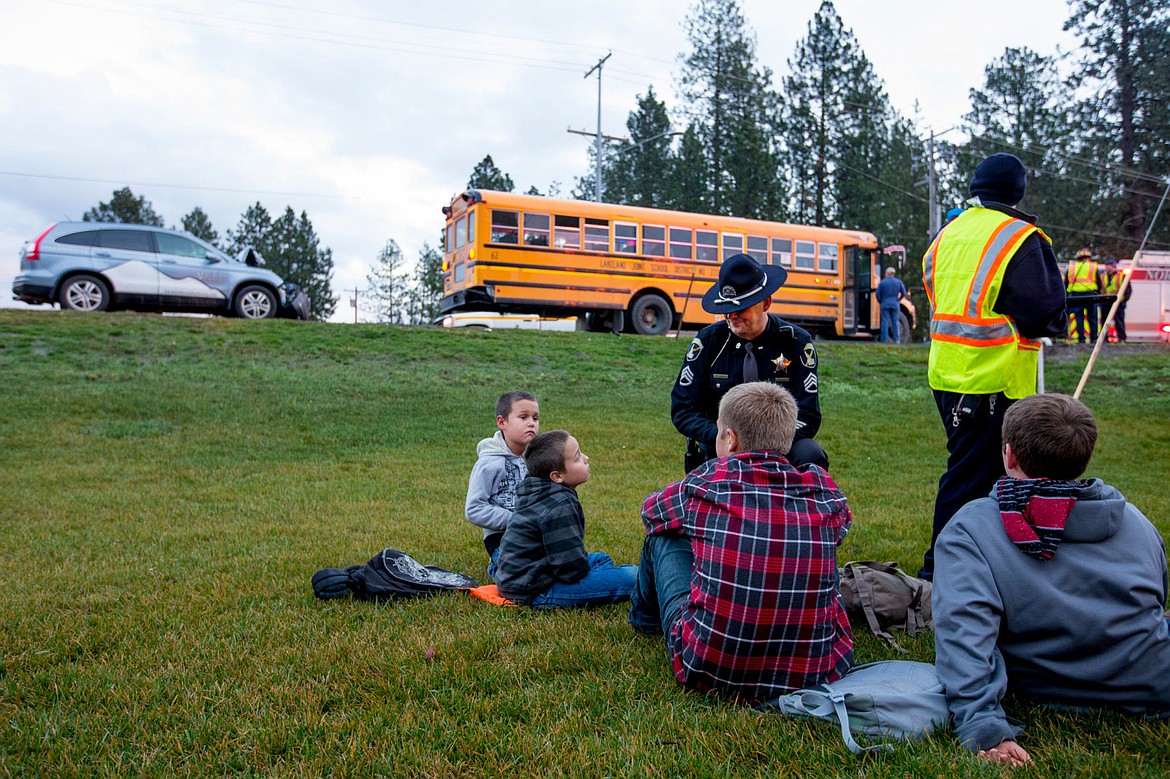 Some students waited inside the bus after the crash while their families responded to pick them up. Others were evaluated and consulted by emergency responders in a yard on the west side of Highway 41.